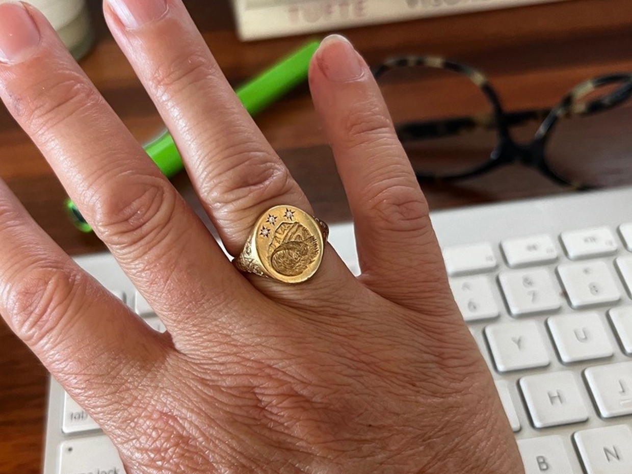 Inspiration came from an evening watching The Crown, and the gift of a signet ring given to Princess Diana. Marnie set about researching where she could commission a pair of bespoke signet rings, and came across Rebus.