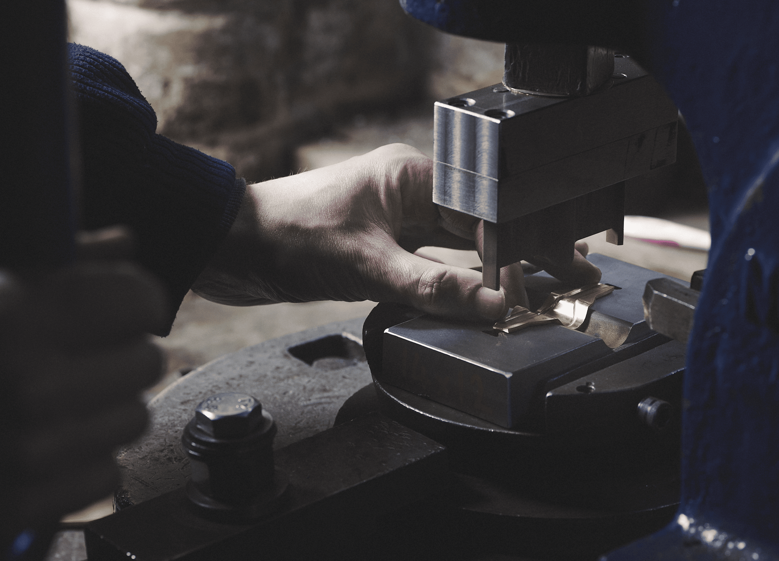 With the introduction of British-made, die-stamping tools, we can now produce a suite of heavyweight, stamped signet rings unique to Rebus: meaning your Oxford 55 is absolutely singular. Hardened steel tools are used to punch a blank sheet of precious metal to form and cut the ring - just as you image a coin to be produced. This process is incredibly specialised and precise, producing a beautifully compact ring of optimal quality, density, and longevity; each Oxford 55 signet ring really is an heirloom forever.