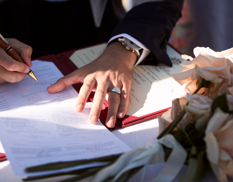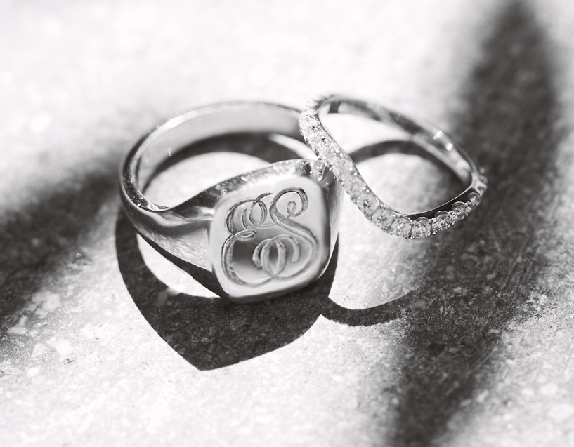 “I was never really into the idea of wearing a wedding ring as I thought traditional versions were too plain. I had been keen to buy something personalised, but wanted to make sure it had meaning behind it. A signet wedding ring seemed like the perfect match!”