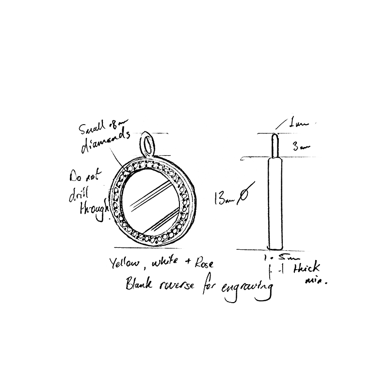Delicate and subtly eye-catching when the light catches the halo of pave set diamonds. Once hand engraved with a sentimental message or symbol, this Rebus pendant will become a cherished addition to your jewellery box. It is small but being 1.5mm thick, it has a very satisfying weight.