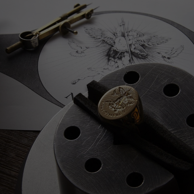 Our engravers can work from a design sourced either from the Rebus crest/monogram database, a found or created image that you provide, or through using our custom design service. If you already have a design prepared and would like to send us a copy, we can provide a quotation of the engraving cost to you. The artwork doesn’t have to be perfect - we can work from old drawings, photos, letter headed paper, wax impressions from previous engraved rings or even just a description. You can book a no obligation design consultation either in person at our London Workshop or remotly via Zoom, using the following link.