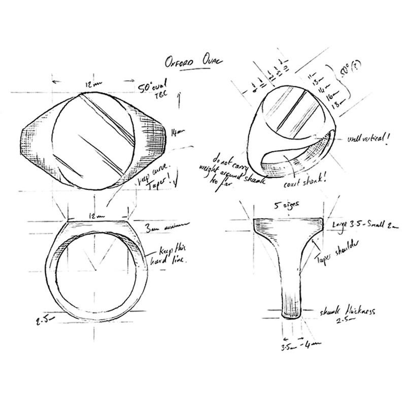 We have lovingly re-created our core range of signet rings and pendants, perfecting them with subtle design modifications this consistent design thread runs through them all – inspired the Oxford 55 Oval.